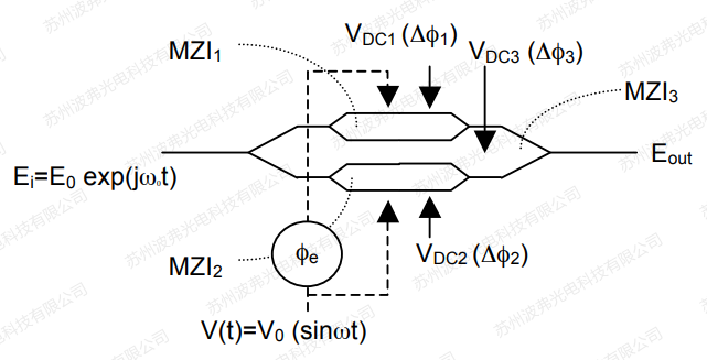 I&Q调制器很早被广泛应用于高速率的中远程电信网络,如QPSK,QAM等。从IQ调制器的结构来看,2个子M-Z干涉仪被嵌套在第三个M-Z干涉仪里面。我们可以证明,当三个子M-Z干涉仪选择适当DC偏置,以相同的微波射频信号注入两个子M-Z干涉仪并控制他们之间的相位延迟,可以实现高抑制比的CS-SSB。这种方式越来越多的被用在微波光子学,OFDM, 原子物理(倍频到780nm)等应用中。