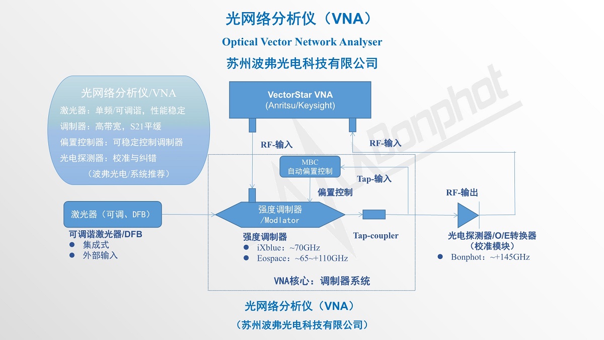 高性能光网络分析仪(VNA)是高速器件参数测试、EO带宽/OE带宽测试、光纤通道&CATV传输系统、射频光纤传输、研究研发等应用常用仪器。苏州888官网集团光电科技有限公司提供基于高带宽电光调制器(iXblue/Eospace),高达70GHz网络分析仪系统元器件,这些器件、性能稳定、高性价比。