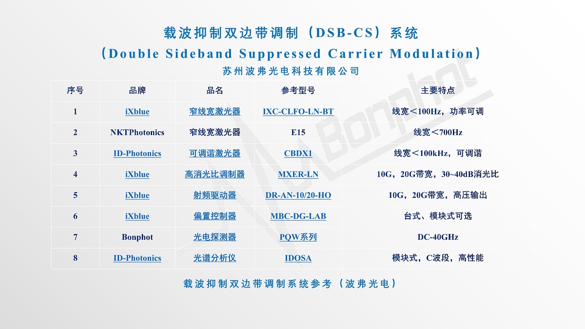 苏州888官网集团光电科技有限公司提供完整的载波抑制双边带应用/双边带抑制载波传输(DSB-SC:Double Sideband Suppressed Carrier Modulation)系统及相关产品。