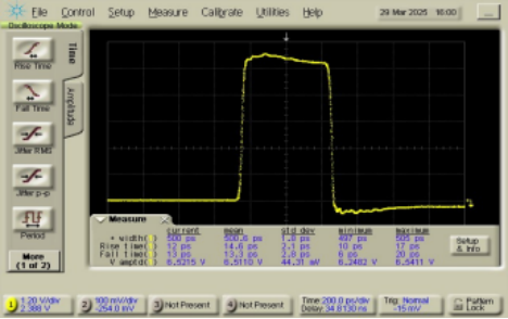 500ps脉宽 @时钟频率. 100kHz,输出电平 6.5Vpp |